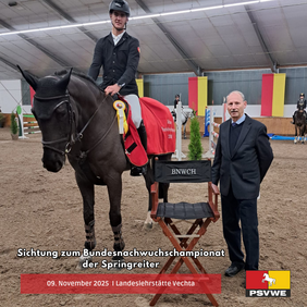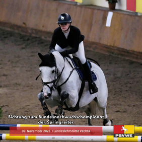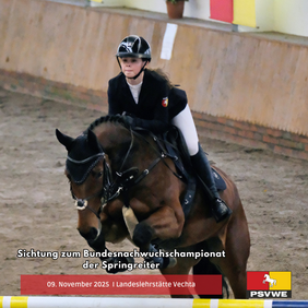 Am 09. November 2025 fand an der Landeslehrstätte in Vechta erstmalig eine kombinierte Veranstaltung statt, bei der das Stützpunkt-Turnier und die Sichtung zum Bundesnachwuchschampionat der Springreiter zusammengeführt wurden. Diese neue Format erwies sich als synergetisch und bot eine breite Palette für die Nachwuchsreitern aus Weser- Ems, um ihr Können unter Beweis zu stellen. Die Beurteilung der Leistungen oblag der Richtergruppe, bestehend aus dem Durchrichter Peter Illert (Darmstadt) sowie den Kollegen Paul Gummelt (Westfalen) und Martin Ahaus (Weser-Ems). Die Springreiter aus Weser-Ems präsentierten sich in herausragender Form.