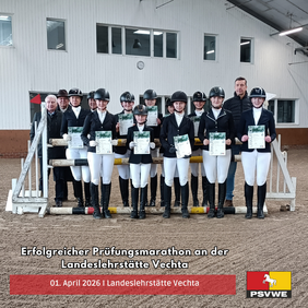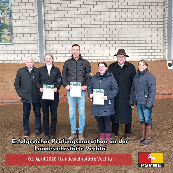 In der Landeslehrstätte Vechta blickte man am vergangenen Dienstag in viele glückliche Gesichter. Zahlreiche Prüflinge traten an, um ihr Können im Sattel und im Umgang mit dem Partner Pferd unter Beweis zu stellen. Das Ergebnis: Ein voller Erfolg auf ganzer Linie und eine bunte Mischung an Absolventen – vom Reiternachwuchs bis hin zum Pferdewirtschaftsmeister.