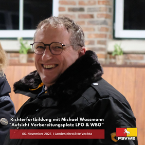 Thema: Aufsicht Vorbereitungsplatz LPO & WBO (Umsetzung des Regelwerks, Umgang mit den beteiligten Personen und Grenzsituationen, Auffälligkeiten bei Pferdekontrollen, etc.)
