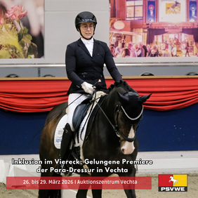 Das Oldenburger Pferdezentrum in Vechta wurde am vergangenen Wochenende zum Schauplatz einer bedeutenden Premiere: Erstmals waren zwei Para-Dressur-Wettbewerbe fest in das Programm des traditionellen Dressurturniers integriert. Ein starkes Signal für den Sport und ein wichtiger Schritt, um dem Para-Reitsport eine größere Bühne zu bieten.
