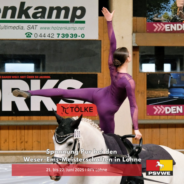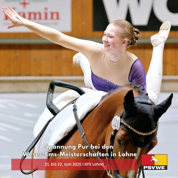 Der Reit- und Fahrverein Lohne (RFV Lohne) war am 21. und 22. Juni 2025 der diesjährige Ausrichter der Weser-Ems-Meisterschaften im Einzel- und Gruppenvoltigieren. Unter der Leitung von Carina Burwinkel und Jana Sommer und ihrem gesamten Team wurden hervorragende Bedingungen für die Wettkämpfe geschaffen.