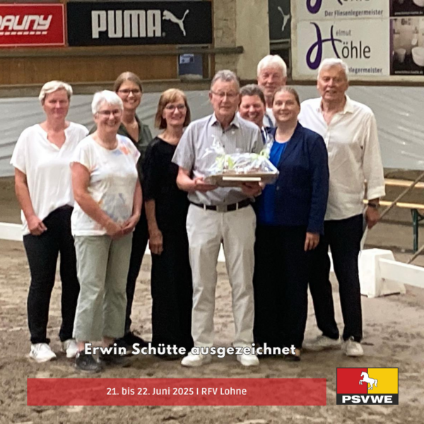 Ein weiterer Höhepunkt der Veranstaltung war die Verabschiedung von Erwin Schütte, einem langjährigen Mitglied des Fachbeirats Voltigieren. Für sein langjähriges ehrenamtliches Engagement wurde er von Michael George mit der silbernen Ehrennadel des PSVWE ausgezeichnet.