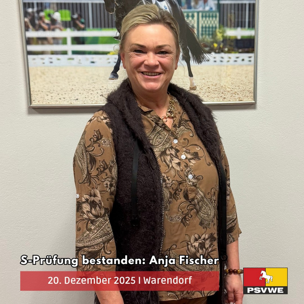 Am 20. Dezember 2025 bestand Anja Fischer am Bundesleistungszentrum in Warendorf erfolgreich die Höherstufung „Richten von Dressurprüfungen KI S* / S**“.
