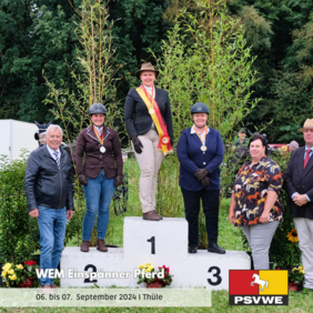 Bei strahlendem Sonnenschein fanden am vergangenen Wochenende in Thüle die Ein- und Zweispänner-Meisterschaften im Fahren statt. Ausrichter war der RFC Thüle, der unter der Leitung von Katja Engelmann die Landesmeisterschaften auf der Anlage der Familie Bernd Duen organisierte.