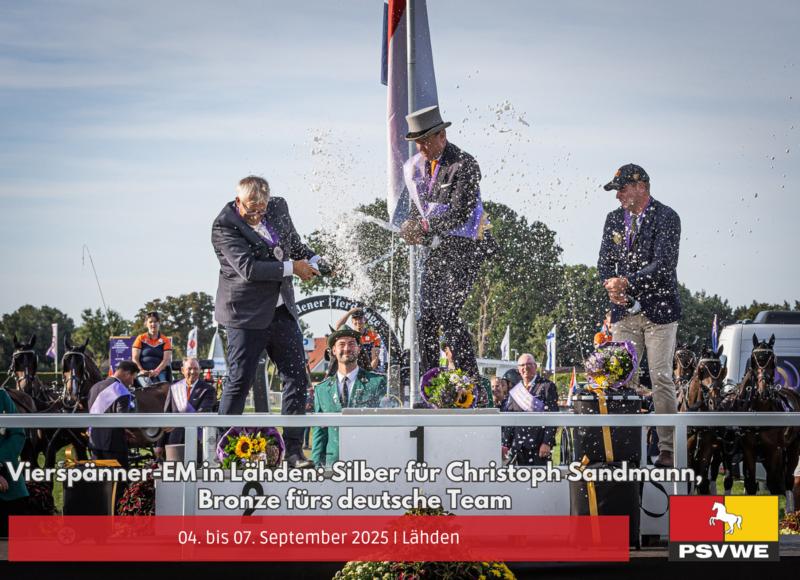 Ein spannendes Finale krönte die Europameisterschaft der Vierspänner auf der heimischen Anlage von Familie Sandmann. Gastgeber Christoph Sandmann sicherte sich die Silbermedaille in der Einzelwertung, während das deutsche Team die Bronzemedaille holte.